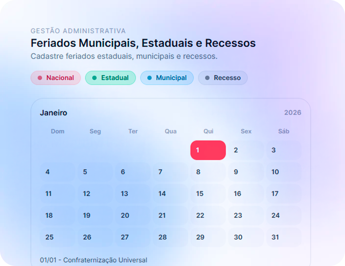 Calendário de Feriado e Recessos