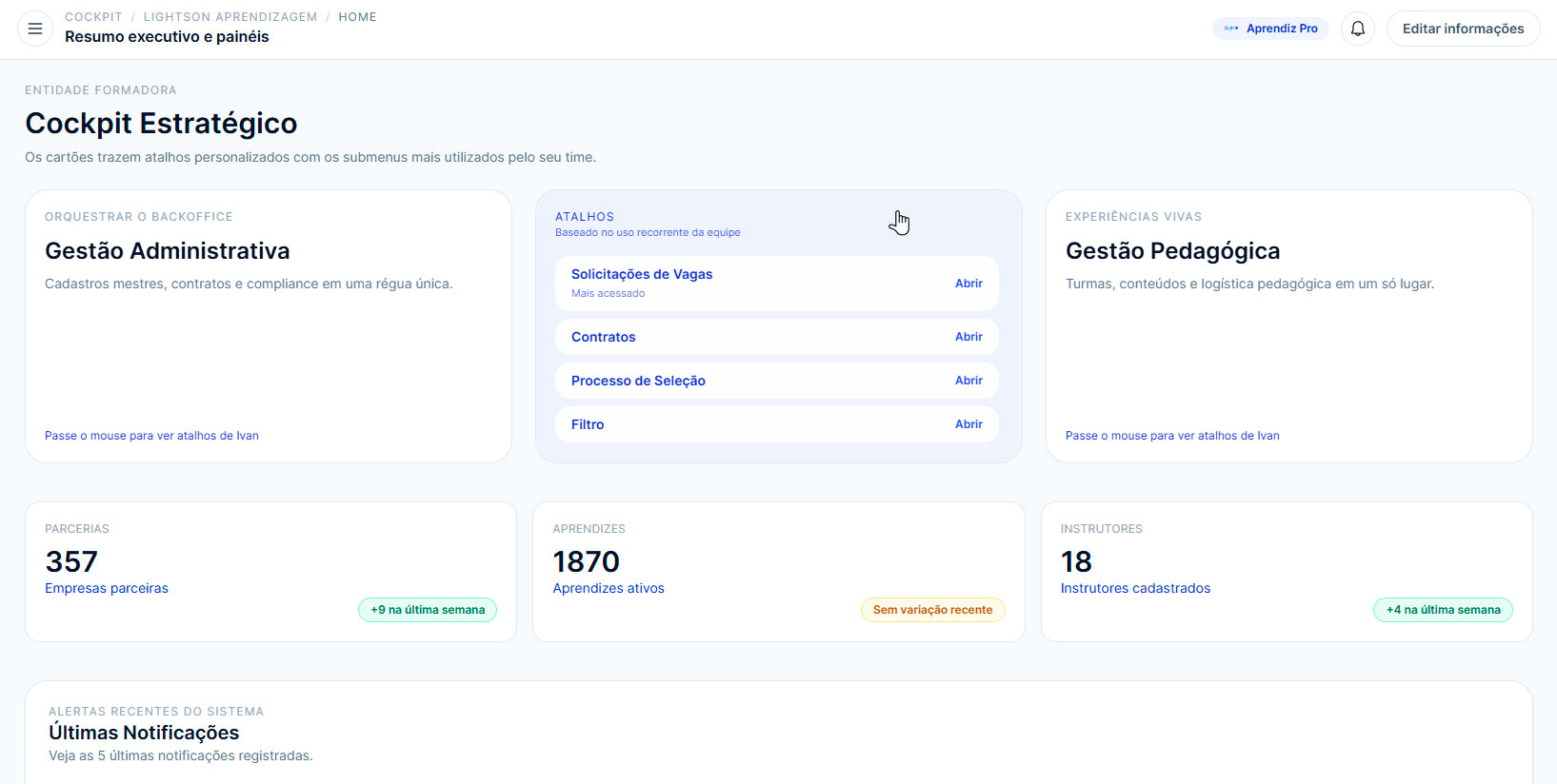 Tudo o que sua entidade precisa para gerenciar aprendizes, empresas e instrutores em um único lugar.